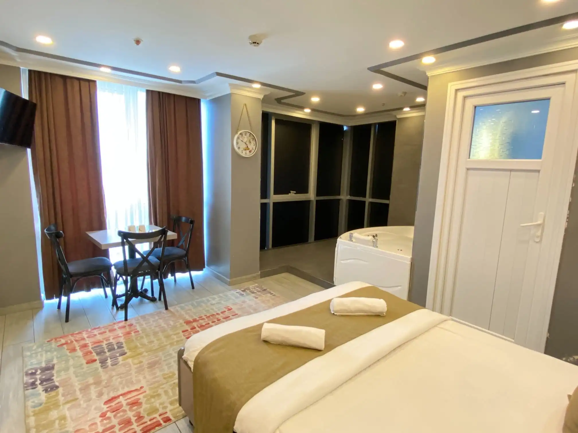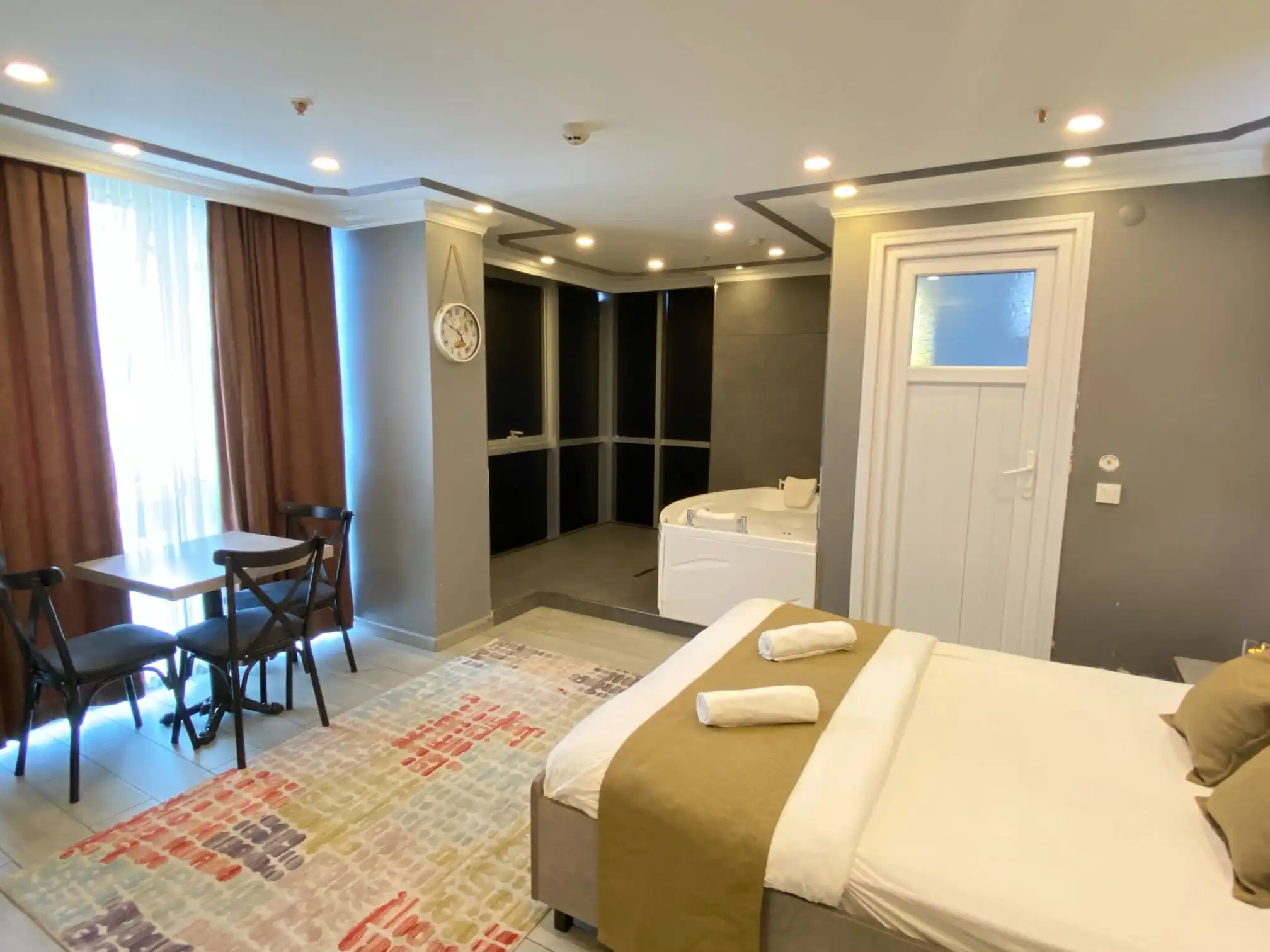 Pendik günlük kiralık daire arayan misafirlerimiz için özel olarak tasarlanan Jakuzi Room, 2 kişilik konaklamaya uygun, konforlu ve romantik bir deneyim sunar. Pendik günlük kiralık ev seçenekleri arasında jakuzi keyfi ile öne çıkan odamız, hem dinlenmek hem de özel anlar yaşamak isteyen misafirlerimiz için ideal bir tercihtir.