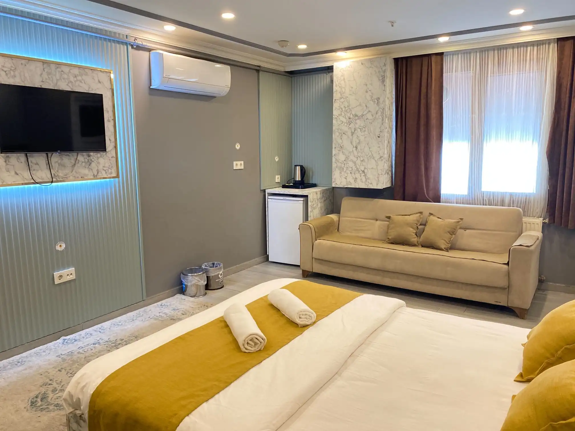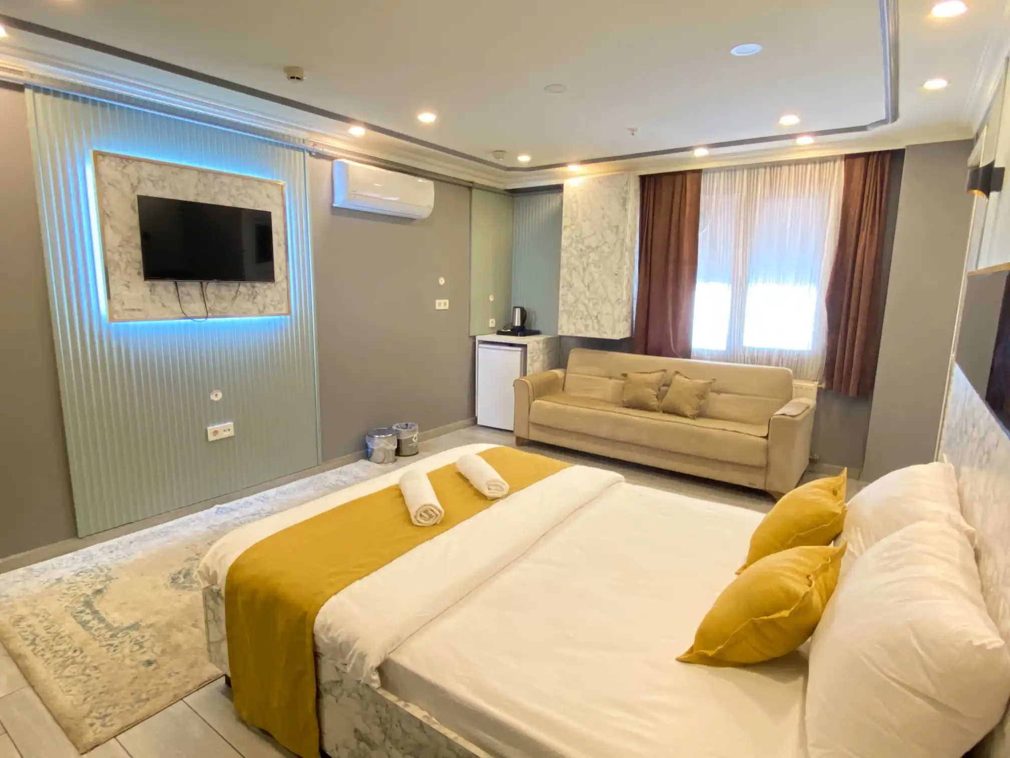 Pendik günlük kiralık daire arayan misafirlerimiz için Superior Room, geniş ve konforlu yaşam alanı ile öne çıkan özel bir konaklama seçeneğidir. Pendik günlük kiralık ev seçenekleri arasında hem şık hem de modern yapısı ile dikkat çeken bu odamız, otel konforunda konaklama sunar.
